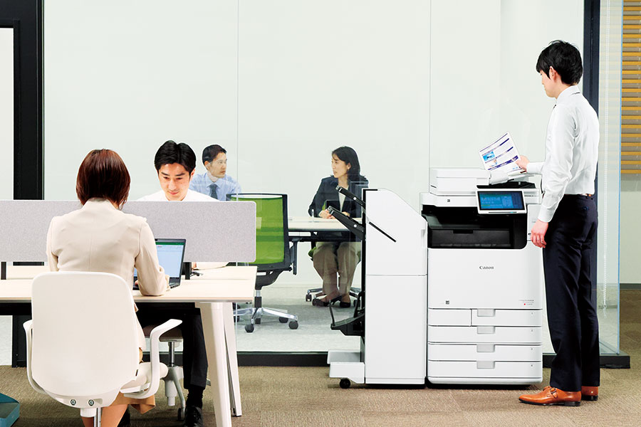 Office multifunction devices (MFDs) are accelerating digital transformation (DX). Canon promotes full-scale office DX with services that seamlessly integrate high-performance, user-friendly MFDs with the cloud. And by extending MFDs’ print management technology, Canon provides printing environments that let people work from anywhere. The company also works to cut CO2 emissions and promote resource recycling in each of the design, production, and reuse stages, as it strives to make products with advanced functionality while minimizing their environmental impact.