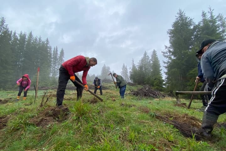 We launched a campaign to plant one tree for every office copier (imageRUNNER series) purchased by our Romanian sales partners. In collaboration with the Transylmagica Association, we planted 527 oak saplings at the base of Mt. Ciomatu as part of the Reintroduction of Oaks in the Ciuc Basin project.