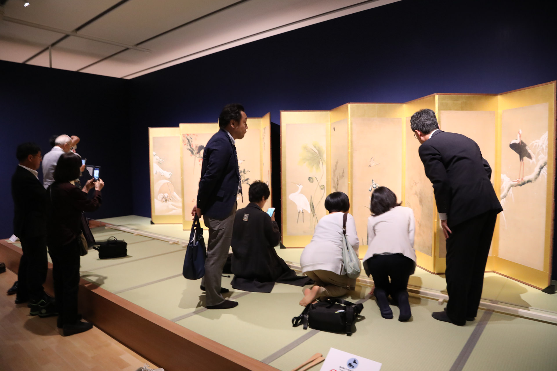 At the venue, the works were spread out on tatami mats just like the time when these works were painted. Visitors were able to fully take in the exhibition unveiling the essence of Hokusai’s art by getting to see the high resolution facsimiles without glass cases and comparing the different expressions of waves between his hand-painted work “Breaking Waves” and a woodblock print “Under the Wave off Kanagawa, from the series Thirty-six Views of Mount Fuji.”
