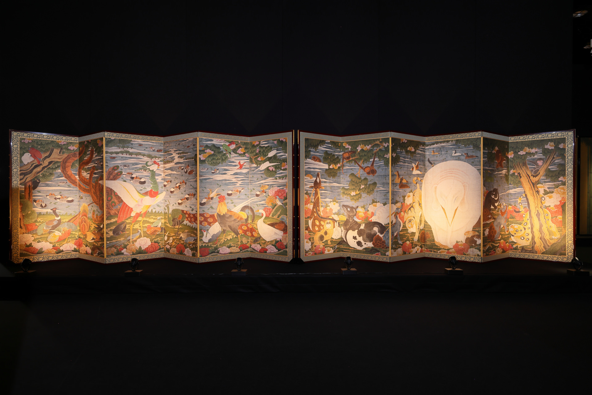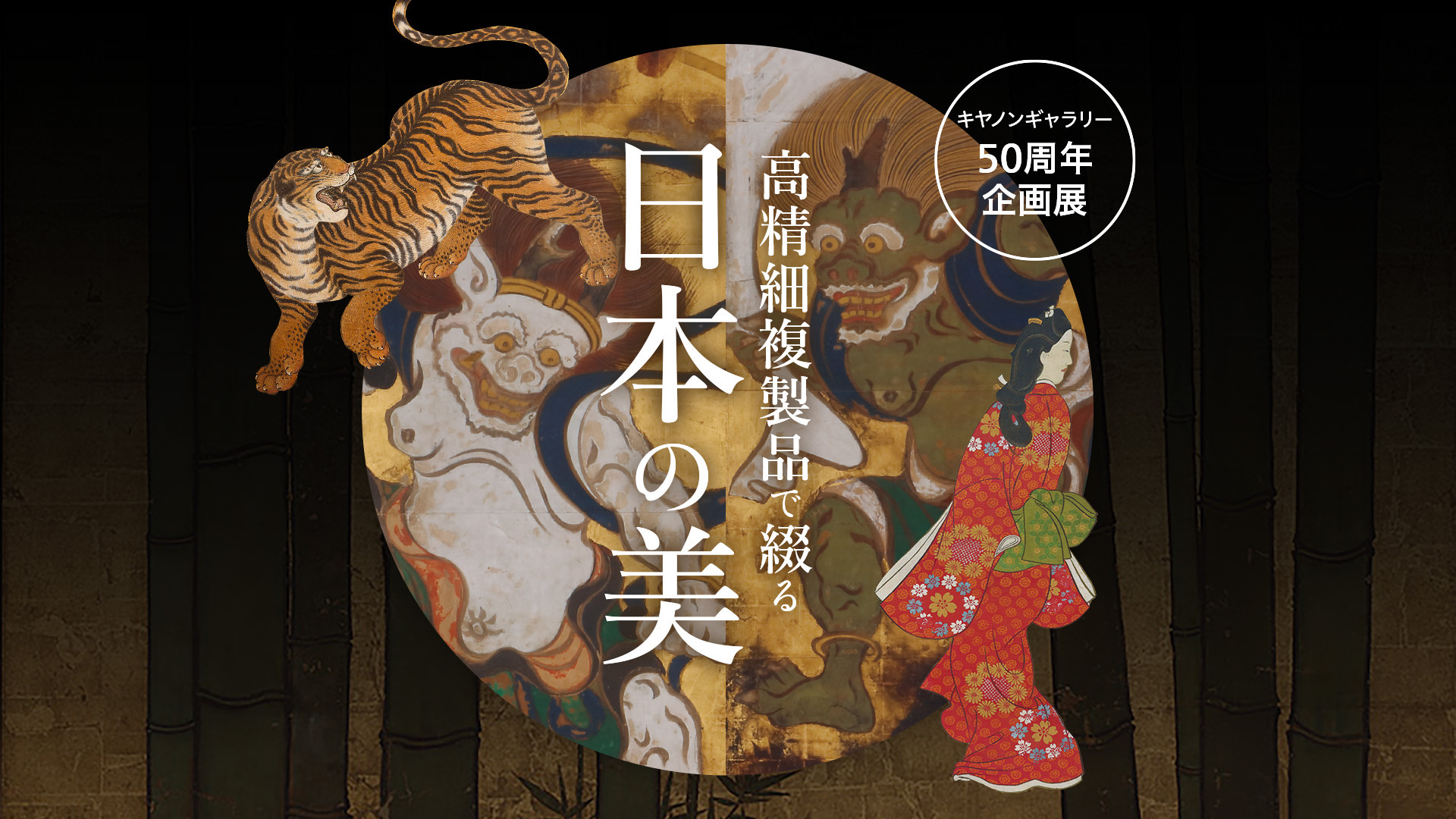 The exhibition held in Canon Gallery S in Shinagawa from October 11 to November 16, 2023, provided visitors with an opportunity to truly appreciate the “beauty of Japanese culture” through eight high-resolution facsimiles of widely known masterpieces of Japanese art, including folding screens using ink and gold and silver foil, as well as folding screens painted with vibrant mineral pigments.