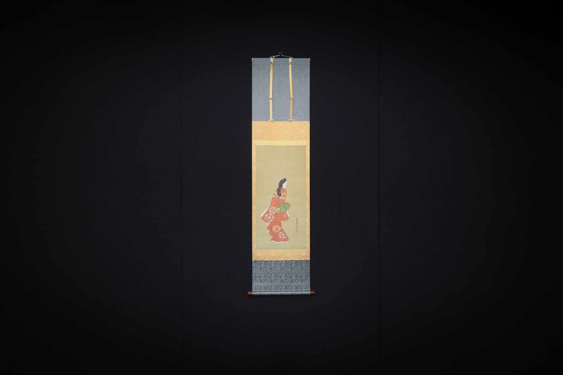 Next to “The Wind and Thunder Gods/Flowering Plants of Summer and Autumn,” were displayed “Beauty Looking Back” and “Viewing Cherry Blossoms at Ueno Park and Autumn at Asakusa” by Hishikawa Moronobu. Both works are characterized by vivid colors, such as red and green, realized by mineral pigments.