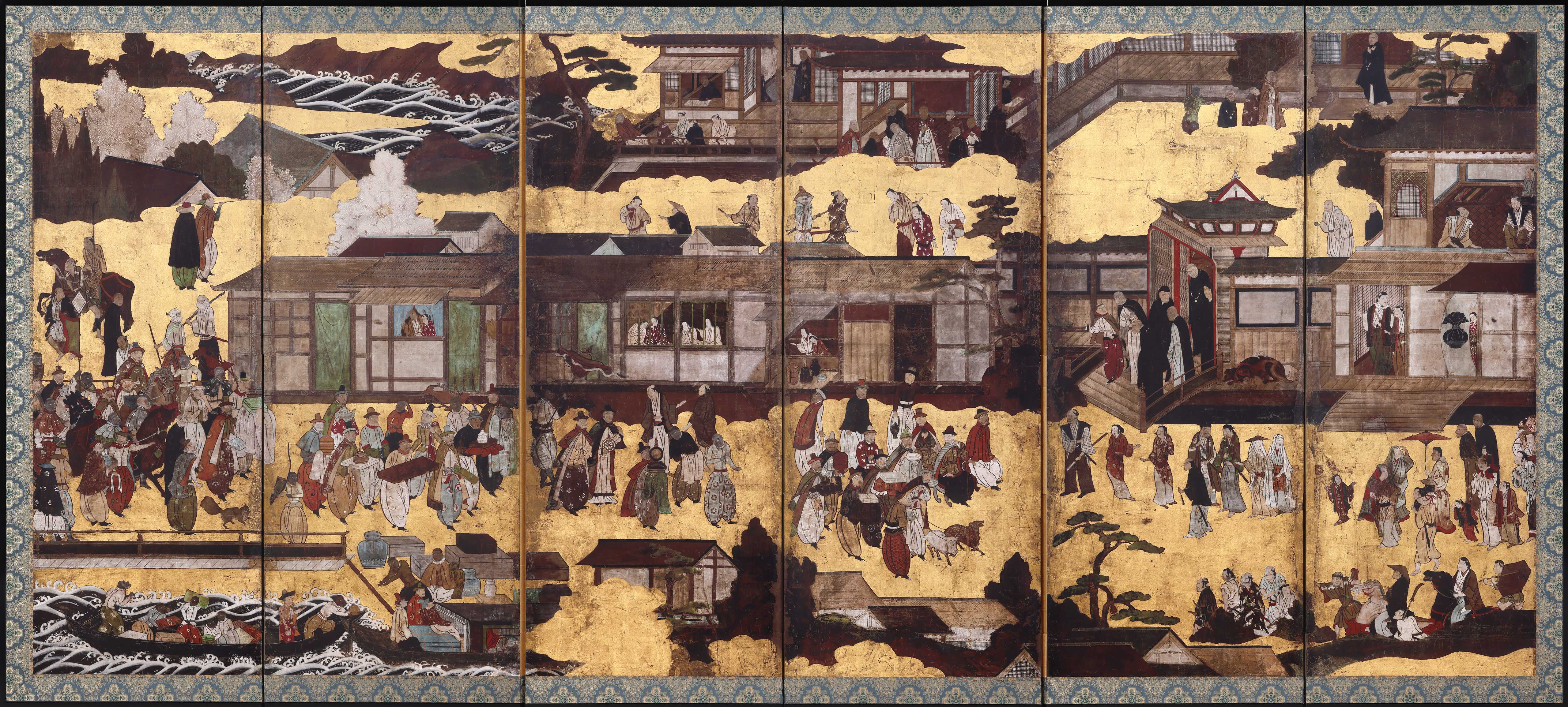 This pair of screens was once a treasured possession of Nagami Tokutaro (1890–1950), a wealthy merchant from Nagasaki and a well-known collector of Nanban art. However, it is believed to have been sold around 1934. After a tumultuous journey, the screens eventually crossed the sea and are now housed in the Cleveland Museum of Art.