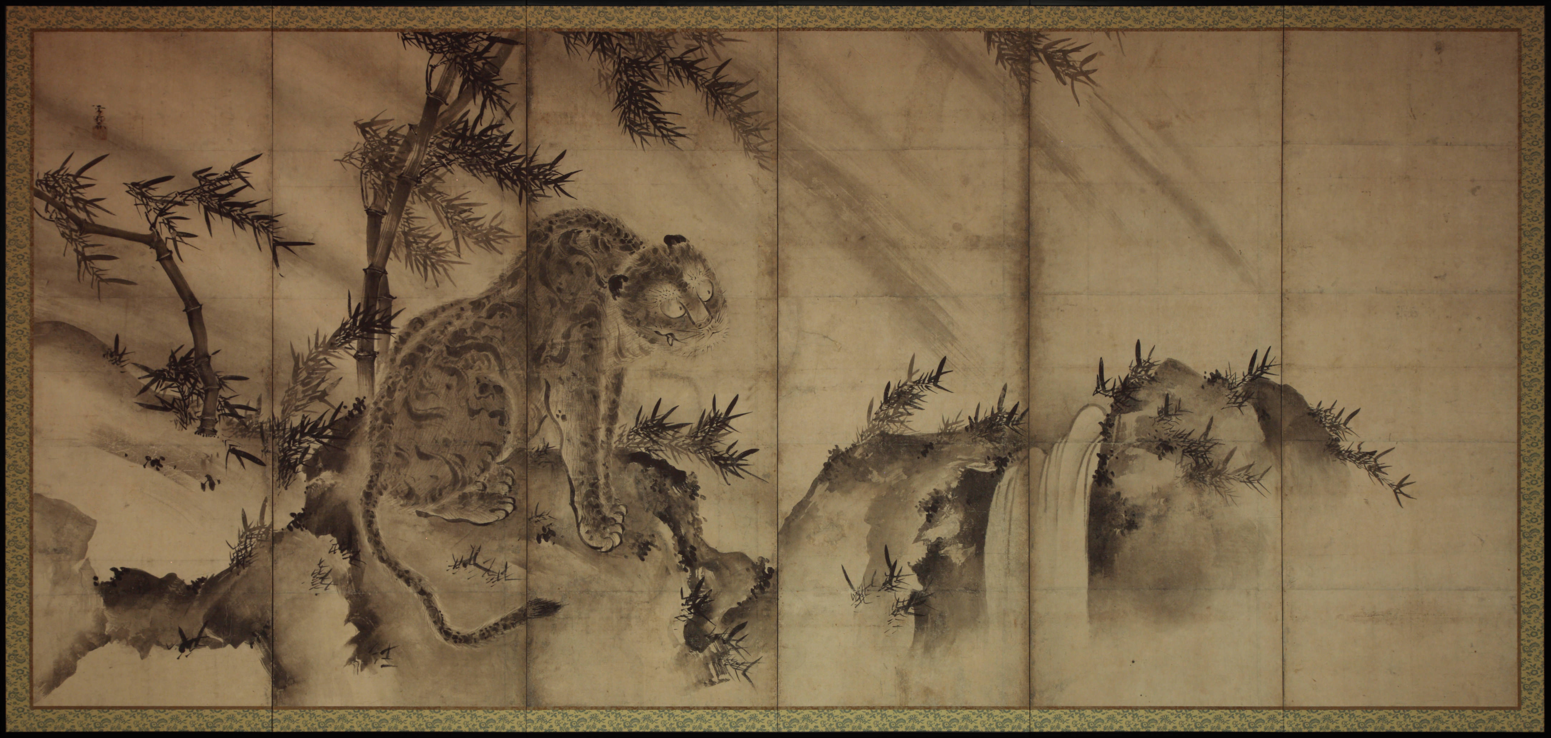Facsimiles of Sesson Shukei (Japanese, 1504-1589). Dragon and Tiger. Pair of six-fold screens; ink on paper, 171.5 x 365.8 cm, 157.2 x 339.0 cm. The Cleveland Museum of Art. Purchase from the J.H. Wade Fund, 1959.136.1-2