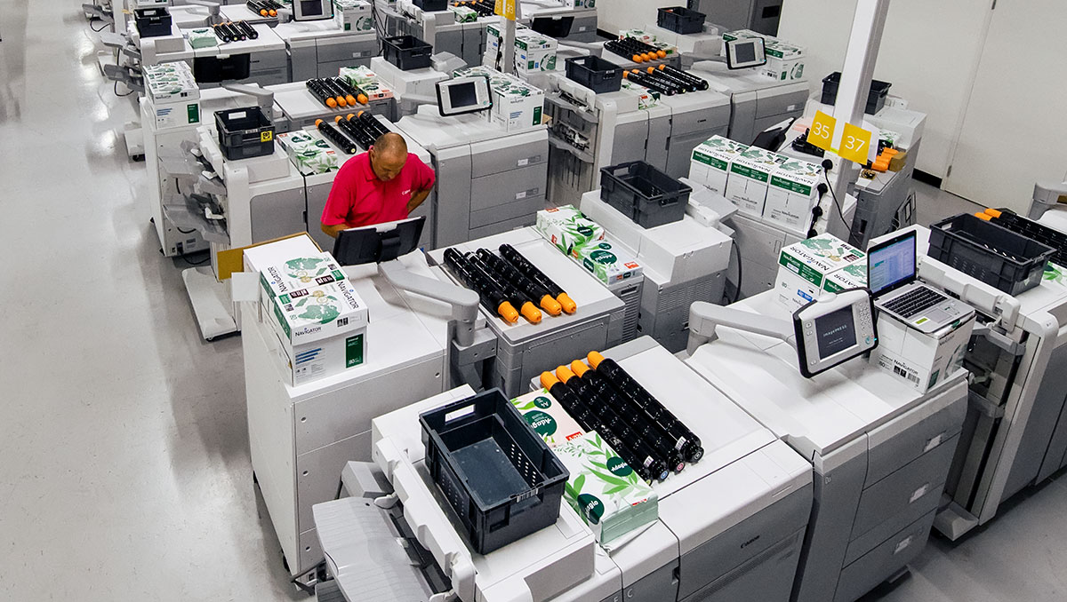 案内レターやダイレクトメール、請求書など、1通ごとに一部の文字や画像を差し替えて高速で印刷する「バリアブル印刷」は、デジタル印刷の大きな特長のひとつです。長期間にわたって安定して稼働するデジタル印刷機を求めていたSynertec社が、印刷品質はもちろん、生産性、堅牢性を重視して、キヤノンのデジタル商業印刷機「imagePRESS C850」84台を導入したのは2017年。Synertec社独自のドキュメント管理ワークフローとのシームレスな接続連携にあたっての技術サポート、印刷が停止する時間を最小限に抑えるためのサービス対応などをつねに迅速に行い、キヤノンは信頼を積み重ねていきました。