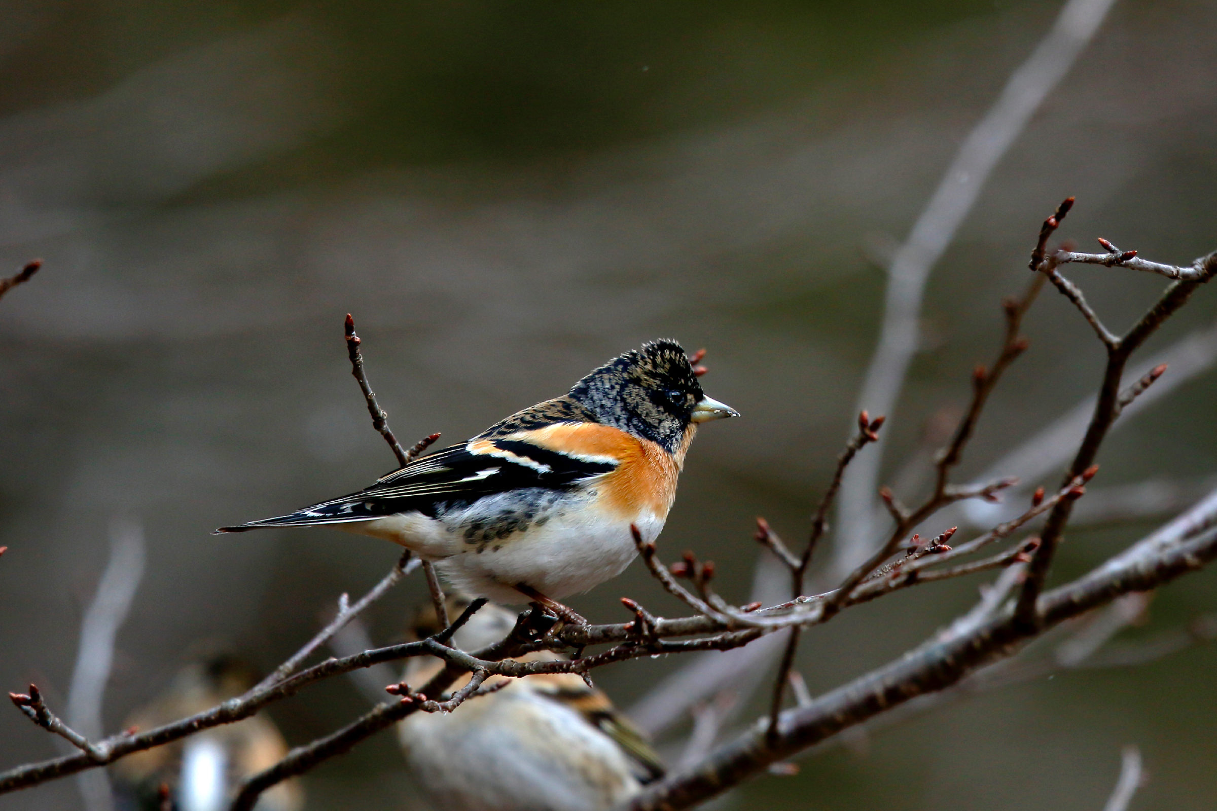 動物界の常識としてメスがオスを選ぶので、視覚中心に生きる鳥類では、オスが派手な姿になるのが普通です。アトリのオスも春が近づくと頭が真っ黒になり、胸のオレンジとのコントラストが鮮やかになります。