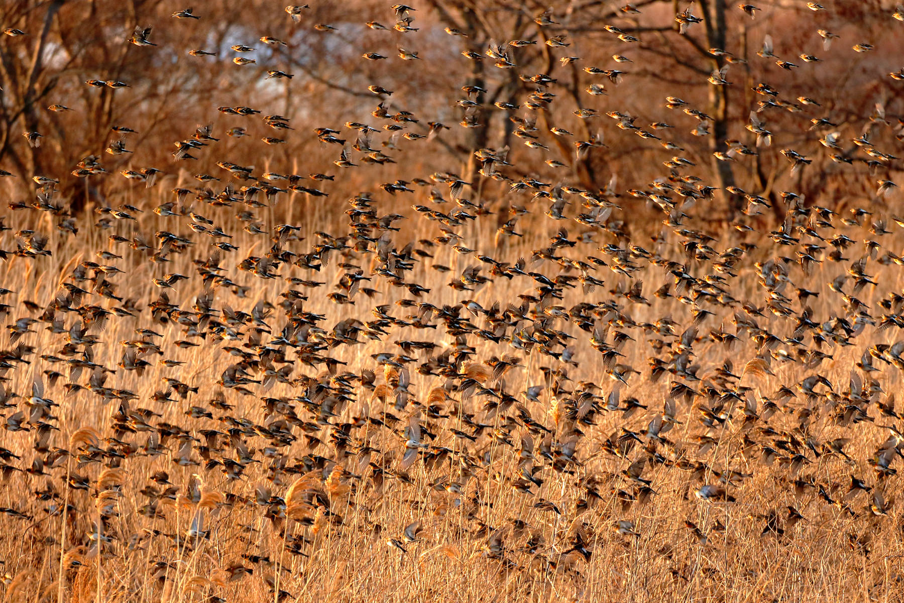 冬鳥の中には、年によって飛来数に多い、少ないの差がある種が少なくありません。アトリもそのひとつで、多い年には空を埋めるような万単位の大群が見られることがあります。