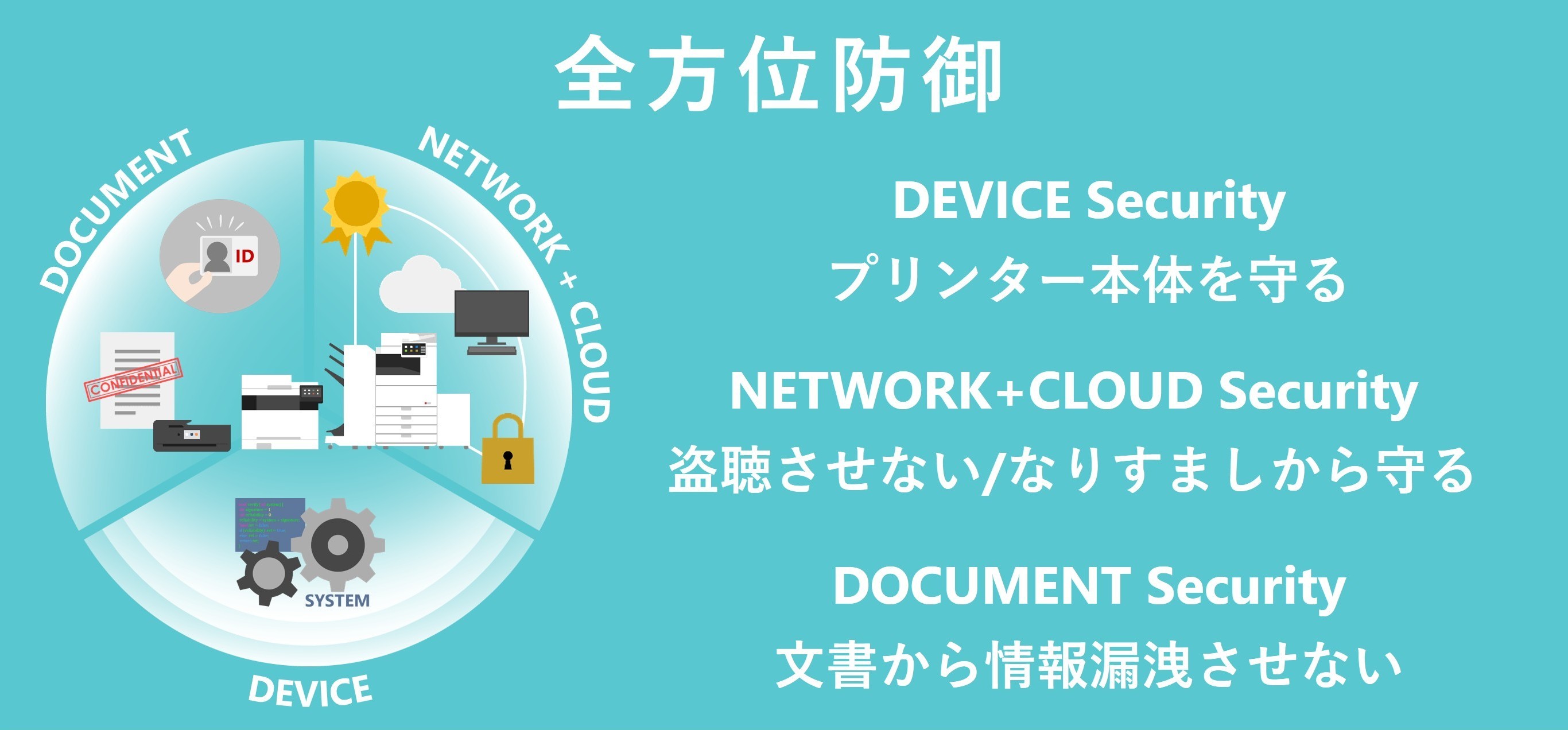 本調査は、世界のベンダー11社を対象とし、デバイス機能、ソフトウエア、クラウド連携から、プリンターの管理・運用をサポートするマネージド/プロフェッショナルサービスまでを含む総合的なセキュリティー提供能力と戦略を評価するものです。本報告書では、「キヤノンはセキュリティーに対する多層的アプローチを重視しており、これにより、あらゆる顧客層や運用環境の要件に対応している。」と記載されています。また、「豊富な実績を持つキヤノンは、信用できるパートナーとして位置づけられ、先進的で信頼性のある、将来を見据えたセキュリティーソリューションを提供することができる。」と評されています。